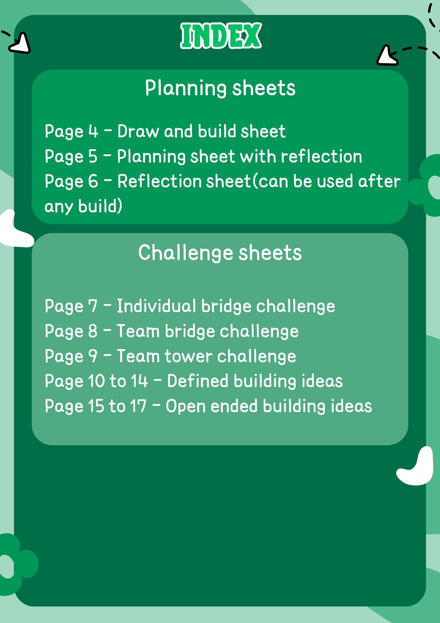 • Building Challenges: Fun projects like creating a robot, spaceship, bridge, or even a treehouse, with step-by-step prompts for students to follow.